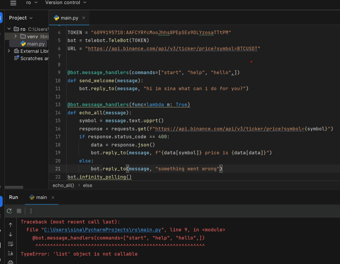 سلام و درود.به اون s آخر bot.message_handlers رو پاک کنید