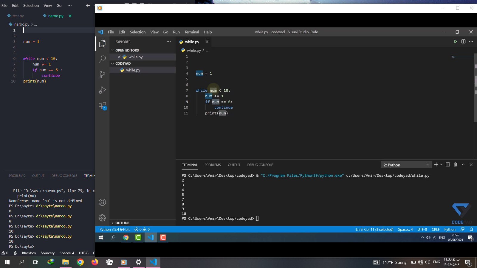 با تشکر از دوره فوق العاده و حرفه ایتون، مطابق فایل ضمیمه کدهای elif, else تو ویژوال کار نمیکنن و با اینکه کاملا کد شما رو کپی کردیم اینطور اجرا شدن