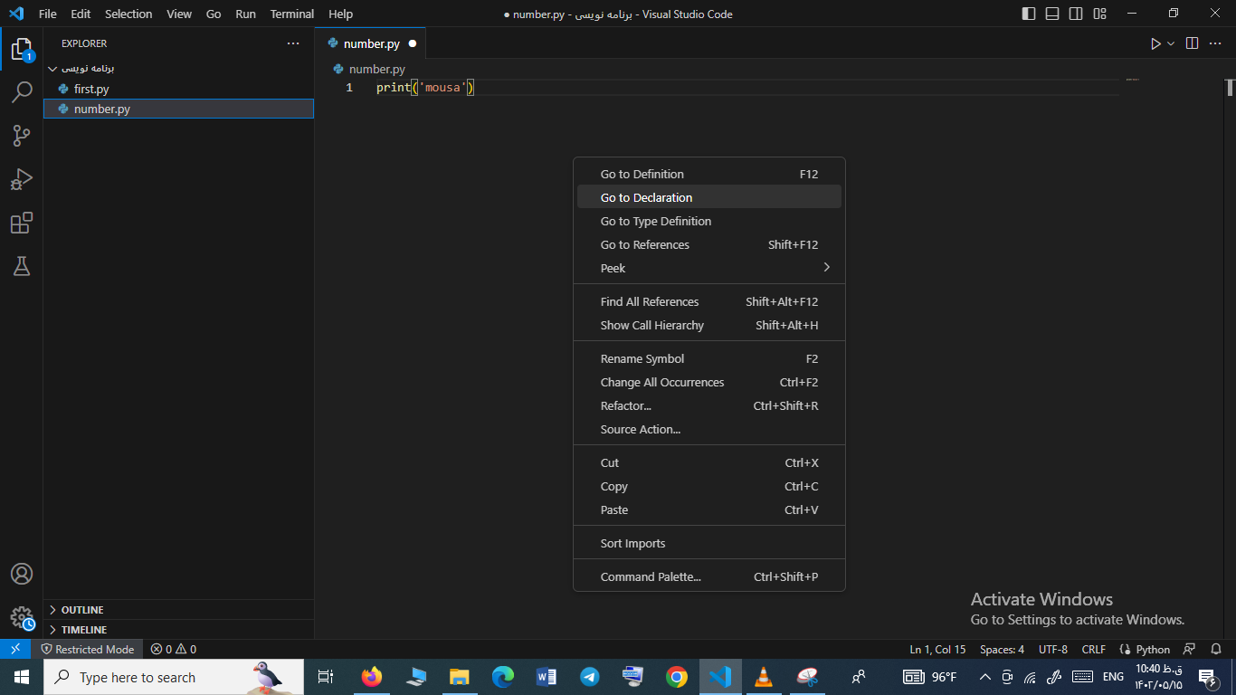 سلام ، تشکر از آموزش عالی شما ، در رابطه با آموزش پایتون ، قسمت 4 آموزش مقدماتی ، بنده نمیتونم اجرا بگیرم ، بعداز کلیک ، گزینه run …… terminal وجود نداره ، از فلش بالا هم که استفاده می کنم ، اجر نمیده . لطف می کنید راهنمایی بفرمایید . ممنون میشم.
