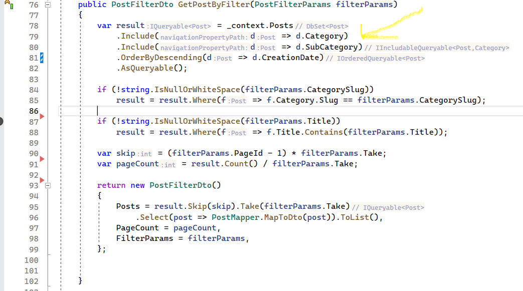 - تو GetPostByFilter هم با include رو برای subcategory نوشتم.