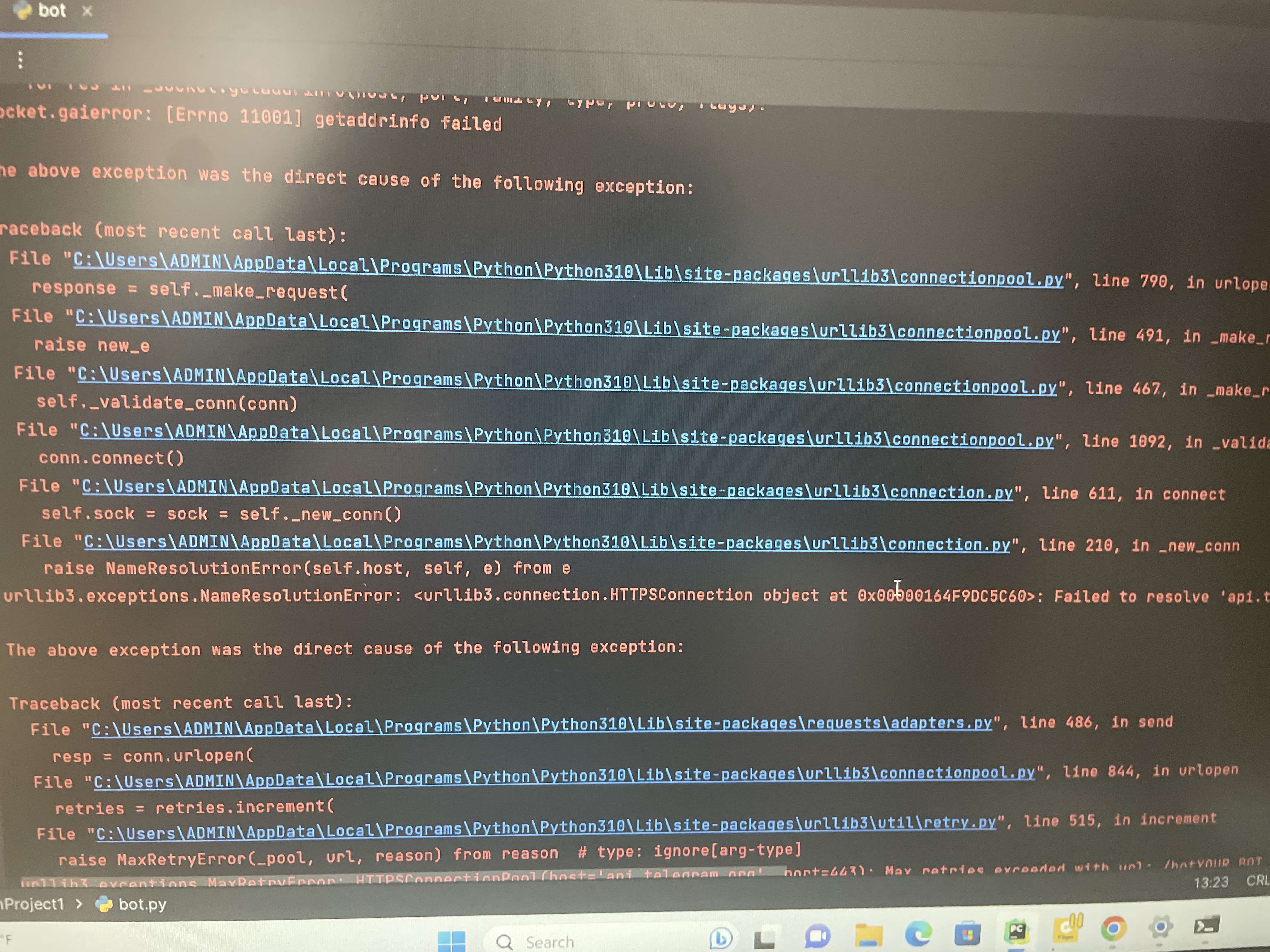 سلام من طبق فیلم پیش رفتم برای ساخت ربات تلگرامی اما ارور میده خیلی زیاد وقتی خطهinfinity رو مینویسم چکار کنم سه چهار صفحه خطا میاره کدم هم دقیقا مثل شماست توکن هم درست وارد کردم