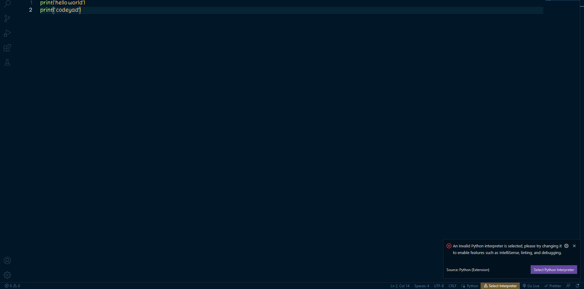 ارورم اینه:An Invalid Python interpreter is selected, please try changing it to enable features such as IntelliSense, linting, and debugging.